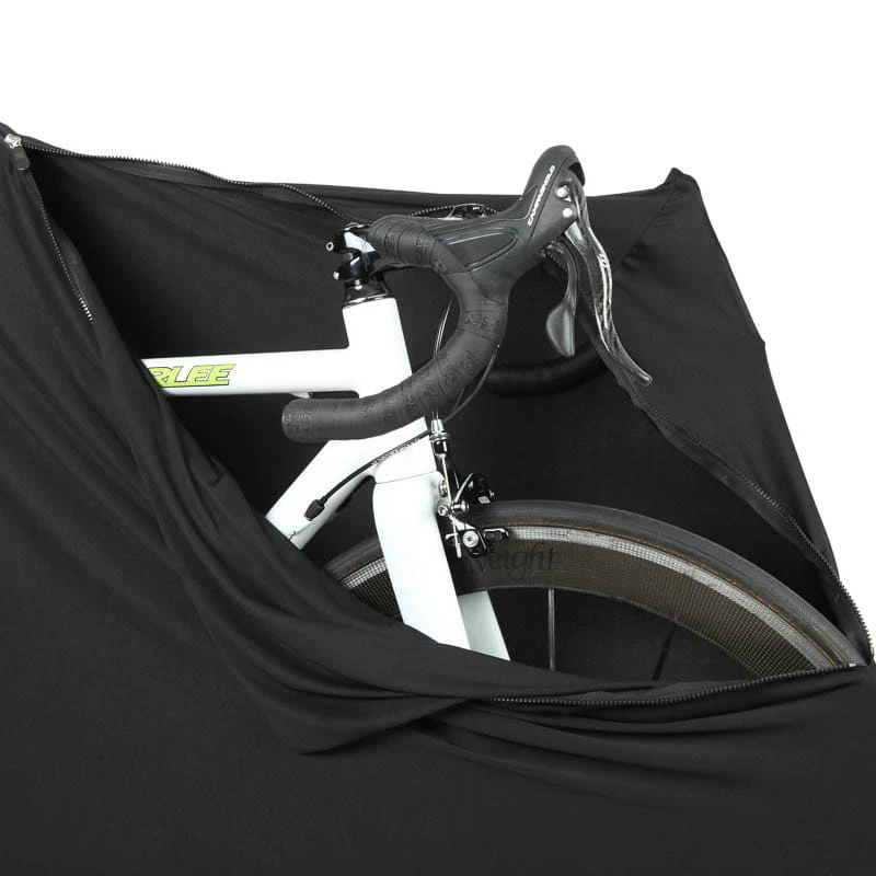 Viele nehmen den Fahrradüberzug auch mit in den Urlaub. Er ist sehr klein zusammanfaltbar und sehr leicht. Im Hotel kann man sein Rad einpacken und an die Wand stellen. Schützt vor Blicken anderer und der Hotelier freut sich, dass das Rad keinen Schmutz machen kann.