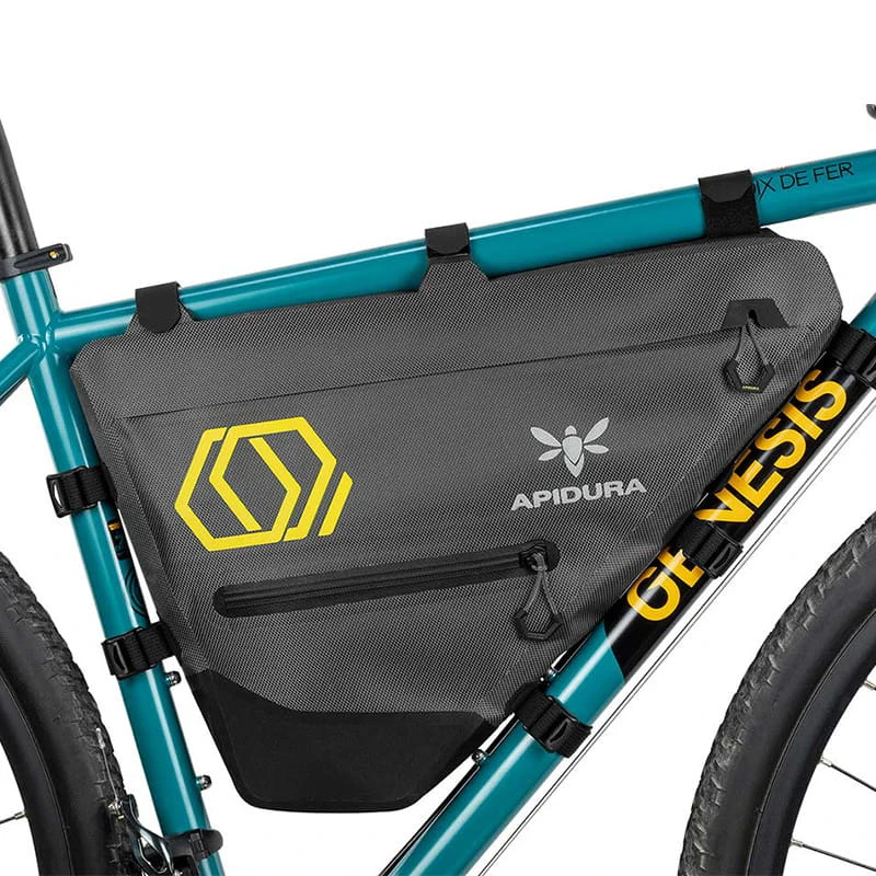 Diese Rahmentasche macht sich den gesamten Raum zwischen Ober- und Unterrohr zu Nutze und schafft viel Stauraum. Damit eignet sie sich perfekt für längere Bikepacking-Touren, auf denen du auch sperrige Gegenstände wie zum Beispiel Zeltstangen oder Kochequipment brauchst. Der niedrige Schwerpunkt einer Rahmentasche ist auch für’,s Handling und den Fahrkomfort vorteilhaft, denn damit sind schwere Lasten gut verteilt. Auch für Carbonrahmen sind die Taschen der Expedition-Serie ideal: Die insgesamt acht Befestigungspunkte verbinden die Full Frame Pack-Rahmentasche sicher mit dem Rahmen, ohne das Carbonmaterial zu beschädigen.