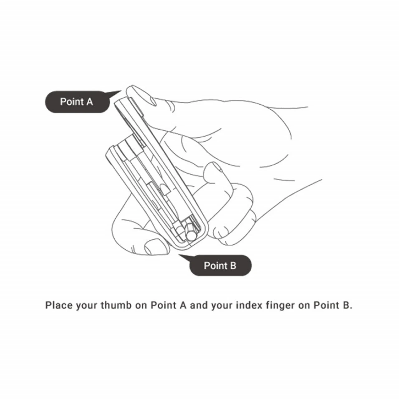 Dieses minimalistische Werkzeug ist preisgekrönt und hochwertig. Das Anzugsmoment wird durch ein Nachgeben des Knopfes signalisiert, wenn die Inbusschlüssel genutzt werden, wie auf der Abbildung gezeigt. Wahlweise kann auch der T25 Einsatz mit Drehmoment genutzt werden, dazu muss das Werkzeug umgebaut werden.
