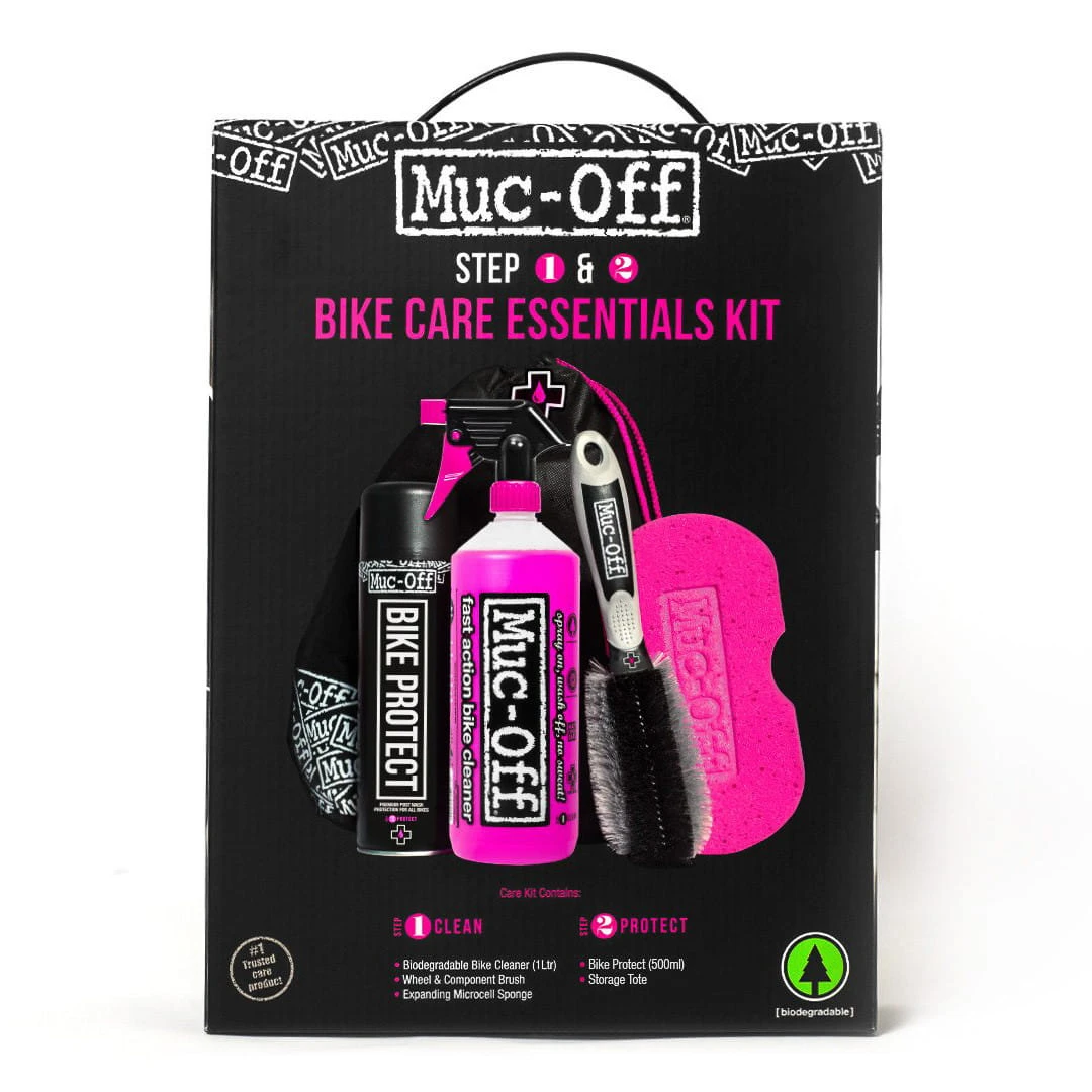 Der Essential Kit von Muc-Off enthält die wichtigsten Pflegemittel für die ganzheitliche Fahrradpflege.
