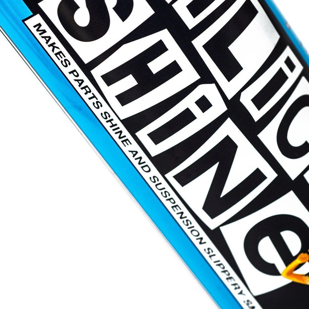 Silicon Shine sorgt dafür, dass dein Fahrrad wie frisch aus der Fabrik aussieht. Zudem verringert es auch dei Reibung an Fahrwerksteilen und verhindert, dass sich Schmutz festsetzt.
