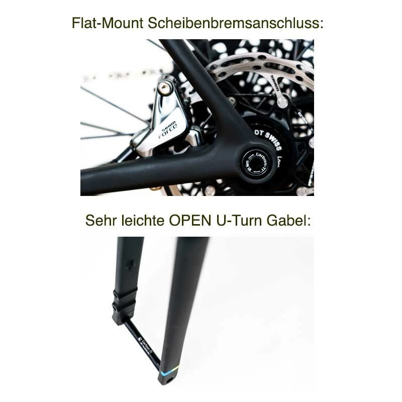 Im Gegensatz zum Vorgängermodell des Open U.P. ist das 2017er Modell mit dem moderneren und heute gängigerem Flat-Mount Scheibenbrems-System ausgestattet. So sind z.B. die neuen Shimano und Sram Schaltgruppen einfach und ohne Adapter zu befestigen.