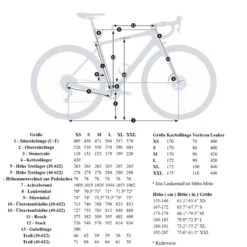 - Radius: 344 mm, Felge: 700C/29er mit Reifen: 32 mm Cross