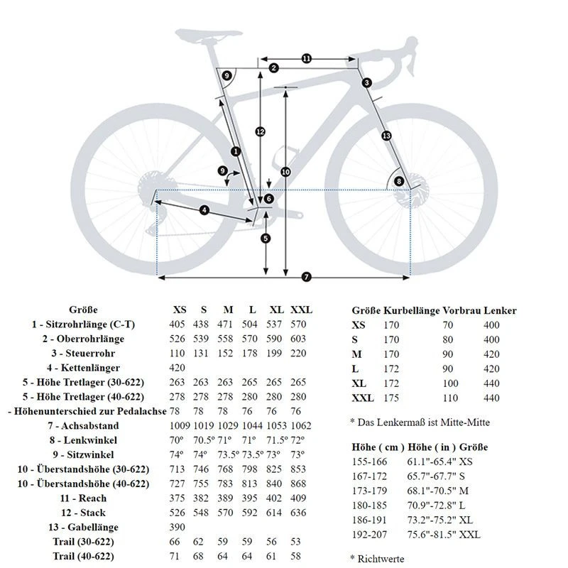 - Optimierter Lenkwinkel und ein für jede Rahmengröße angepasster Nachlauf bieten erstklassige Stabilität und Präzision