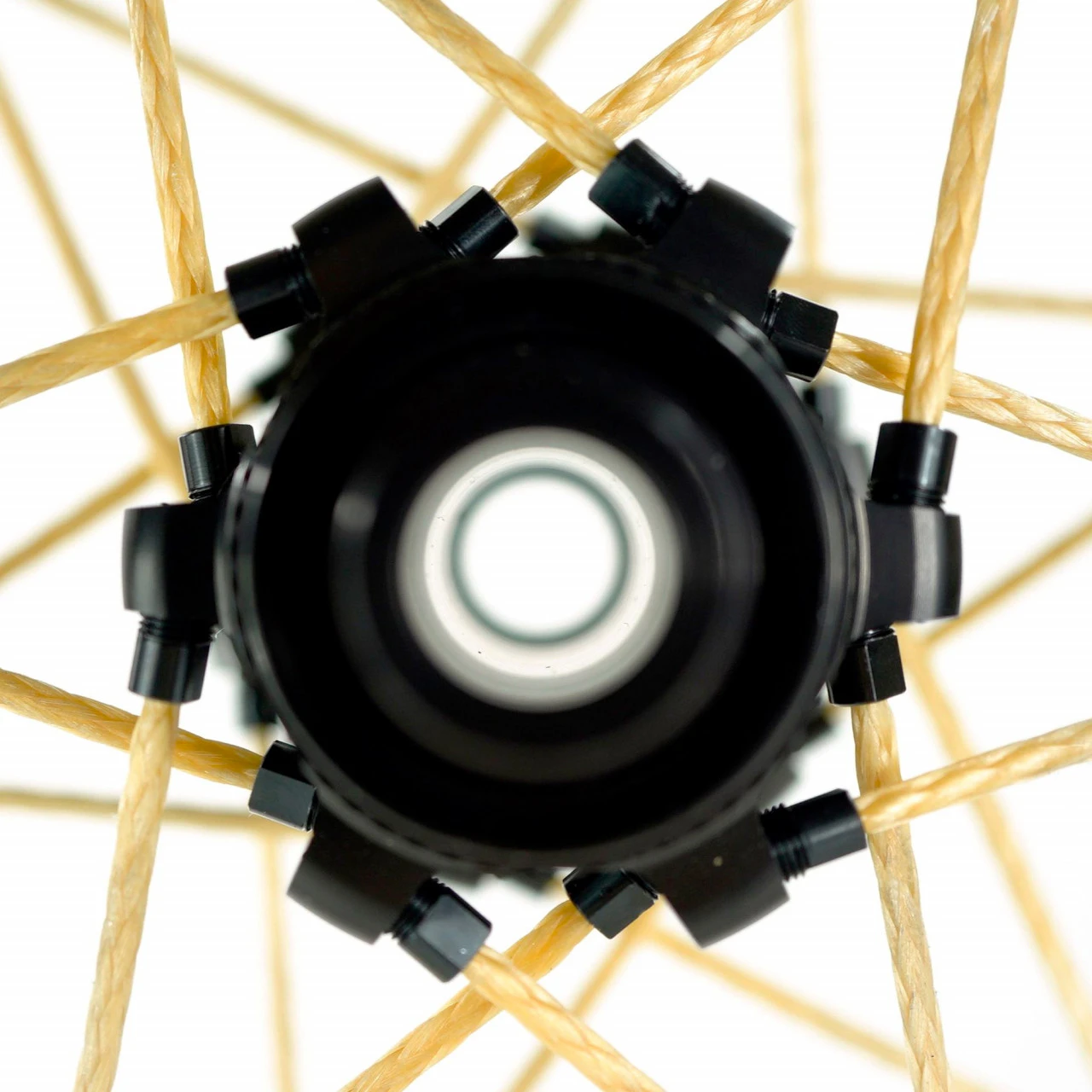 Mit diesen Materialien kommt man auf sagenhafte 2,2 Gramm pro Speiche – leichter als jede andere (Stahl)speiche der Welt. Ein weiterer Vorteil: Das textile Material ist flexibler und weniger anfällig für Speichenbrüche. Es dämpft außerdem auftretende Vibrationen, wodurch du Stöße weniger am Körper spürst.