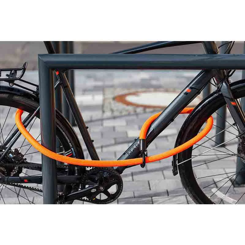 Die Textilfasern verleihen dem Schloss nicht nur eine besonders schöne Optik, sondern schützen auch vor Kratzern. Anders als bei Stahlkettenschlössern gibt es hier nämlich keine harten Kanten, die den Lack beschädigen.