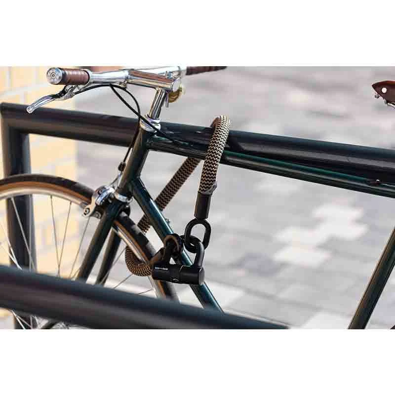 Die Textilfasern verleihen dem Schloss nicht nur eine besonders schöne Optik, sondern schützen auch vor Kratzern. Anders als bei Stahlkettenschlössern gibt es hier nämlich keine harten Kanten, die den Lack beschädigen.