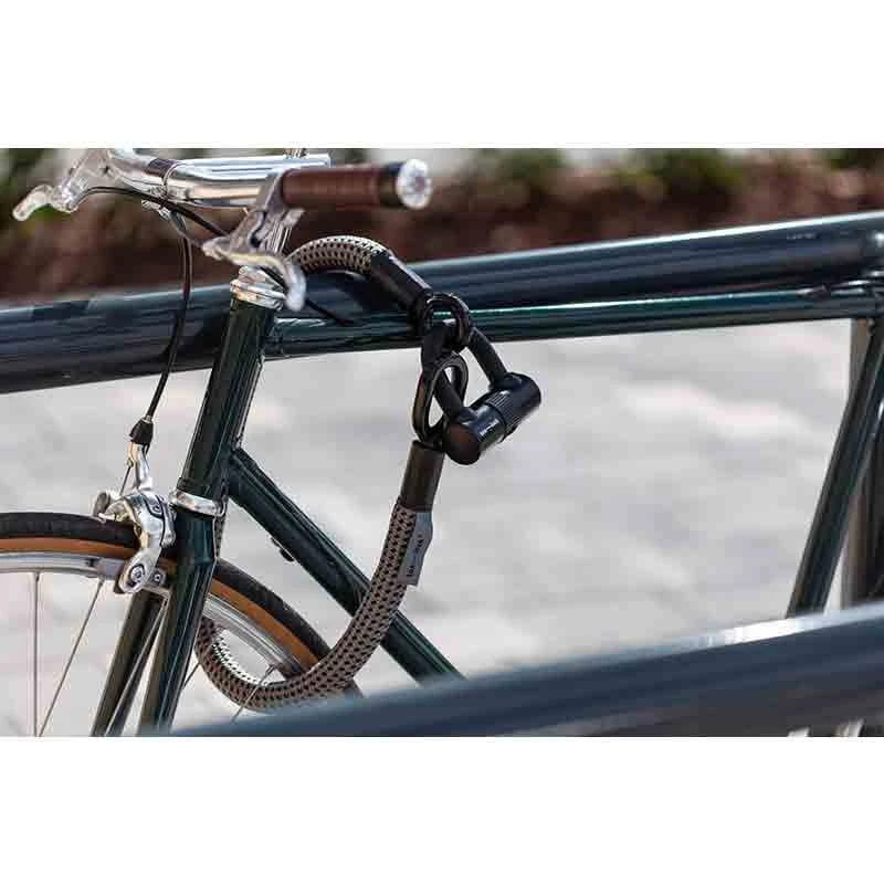 Die Textilfasern verleihen dem Schloss nicht nur eine besonders schöne Optik, sondern schützen auch vor Kratzern. Anders als bei Stahlkettenschlössern gibt es hier nämlich keine harten Kanten, die den Lack beschädigen.