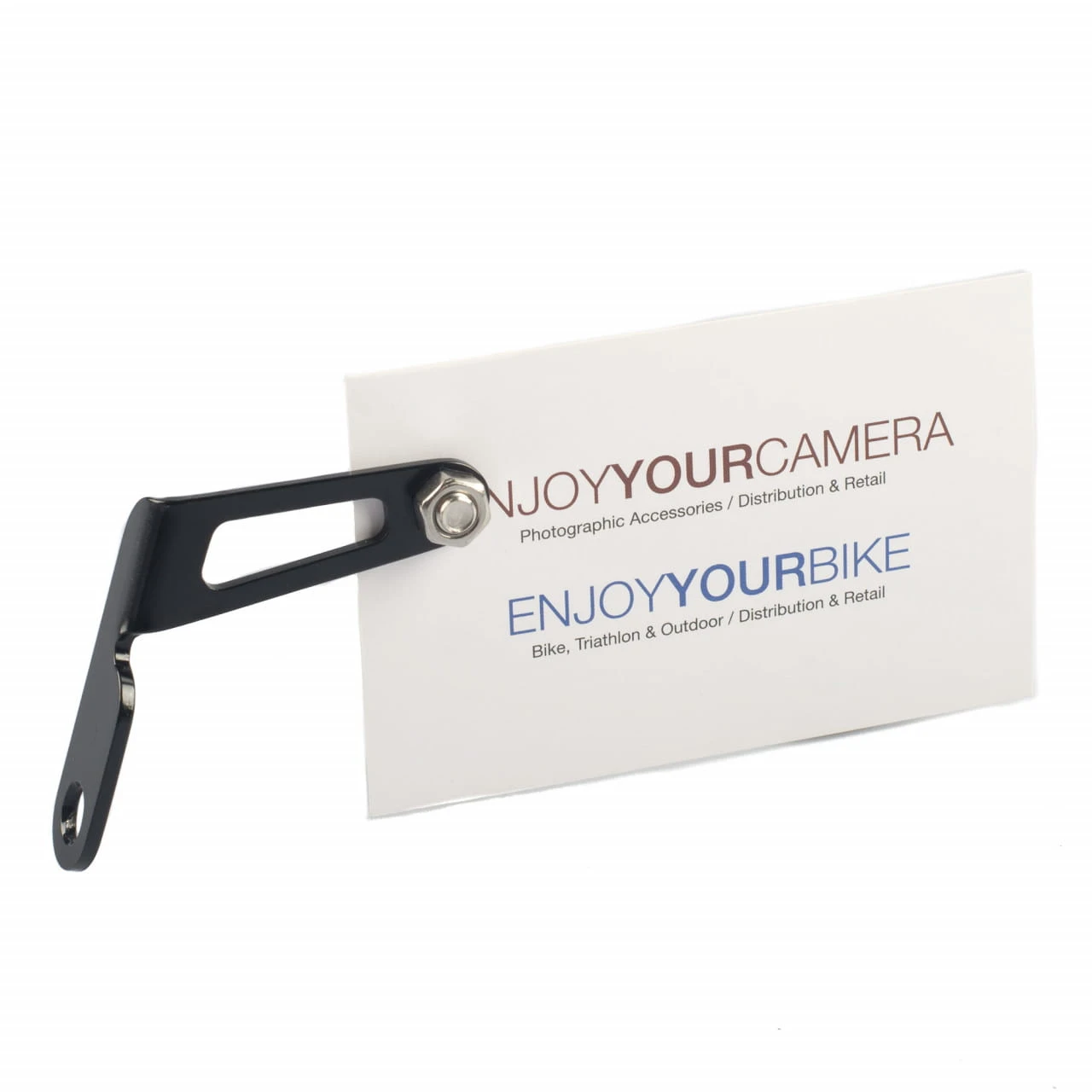 Sehr kleines Bauteil, unauffällig und einfach zu installieren. Einfach die Bremse abschrauben und die Halterung dazwischen setzen. Die Startnummer kann dann einfach angeschraubt werden.